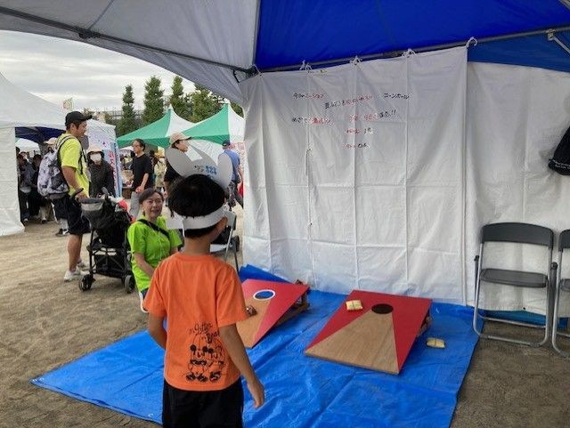 私たち7つのSSCは協力してブースを運営、出し物は「コーンホール」というゲームを行いました。小さな穴の的をめがけてお手玉のような布製のボールを入れて競うゲームです。