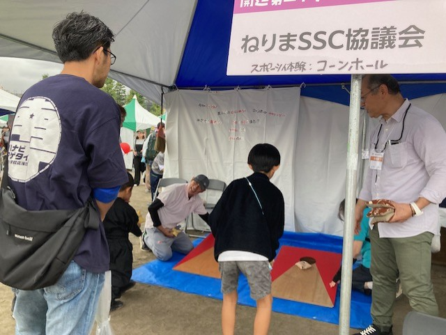 簡単なようでなかなか入らない・・・これが面白いようで850人以上の方が遊んで行ってくれました。ありがとうございました。今後も7つのSSCが集まって行う企画もありますので、どうぞご参加ください。