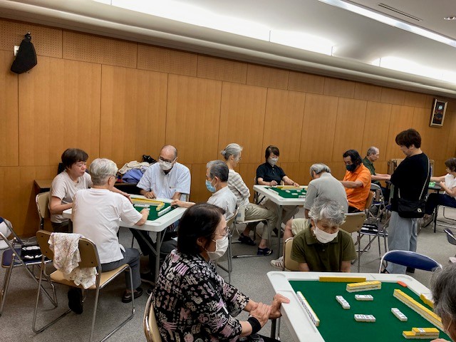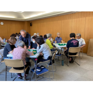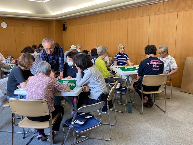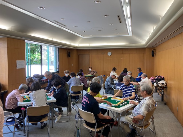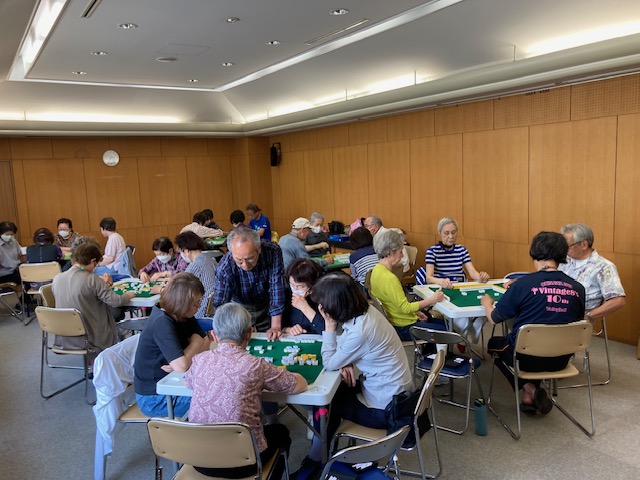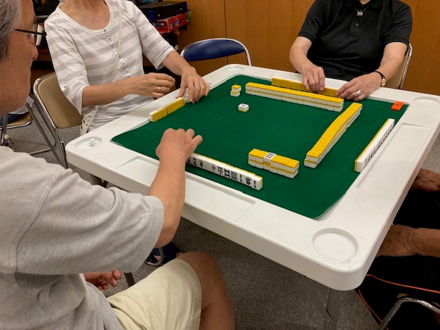 まったく初めての方は、初めての方同士で先生に教えてもらいながらマージャン台を囲み、ちょっとできる方々はレベルが同じような方々と台を囲み、わからない時だけ先生に聞いています。ご自分たちでできる方々は自由に健康マージャンを進めてもらって楽しそうです。