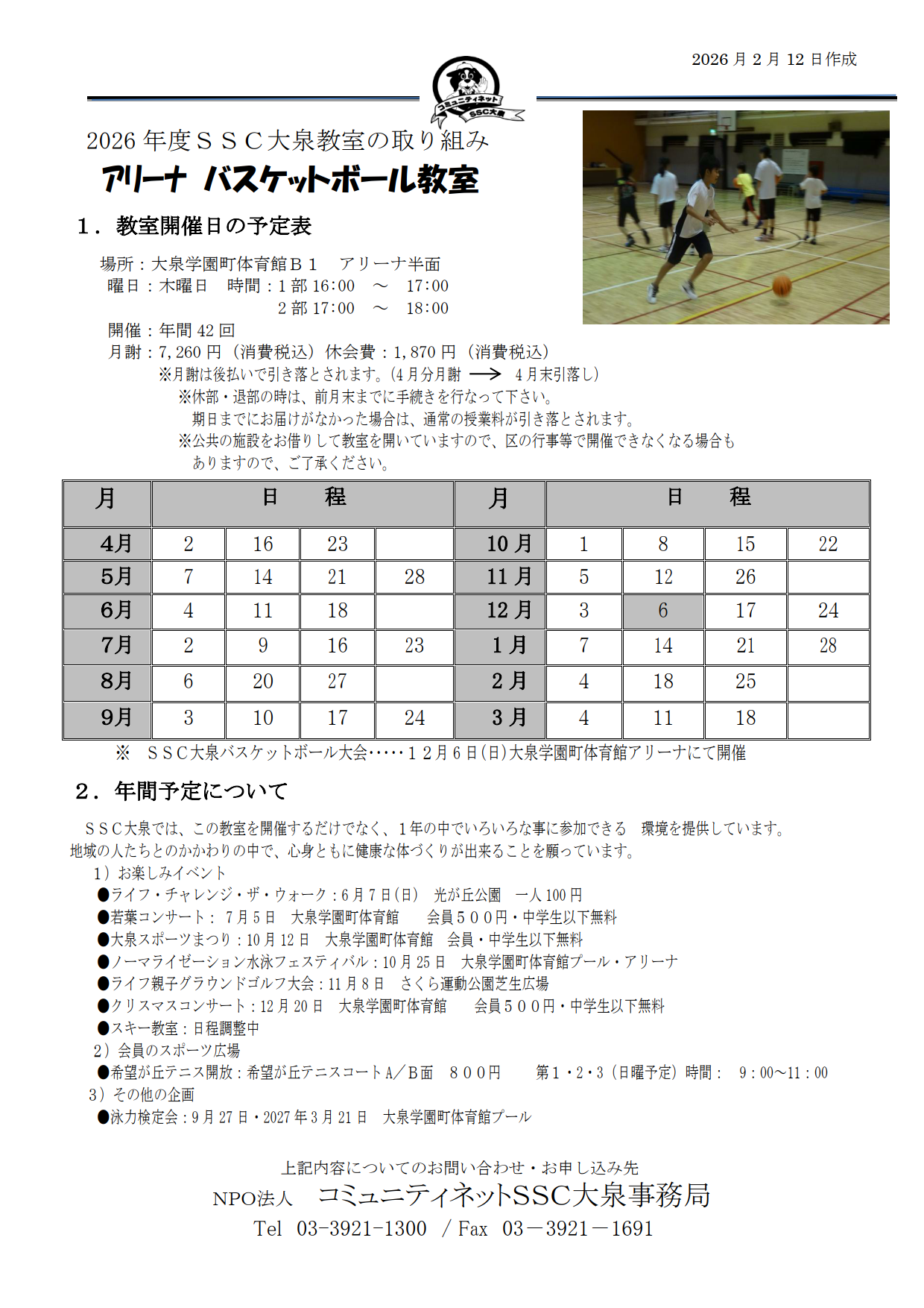 |バスケット教室(アリーナ)