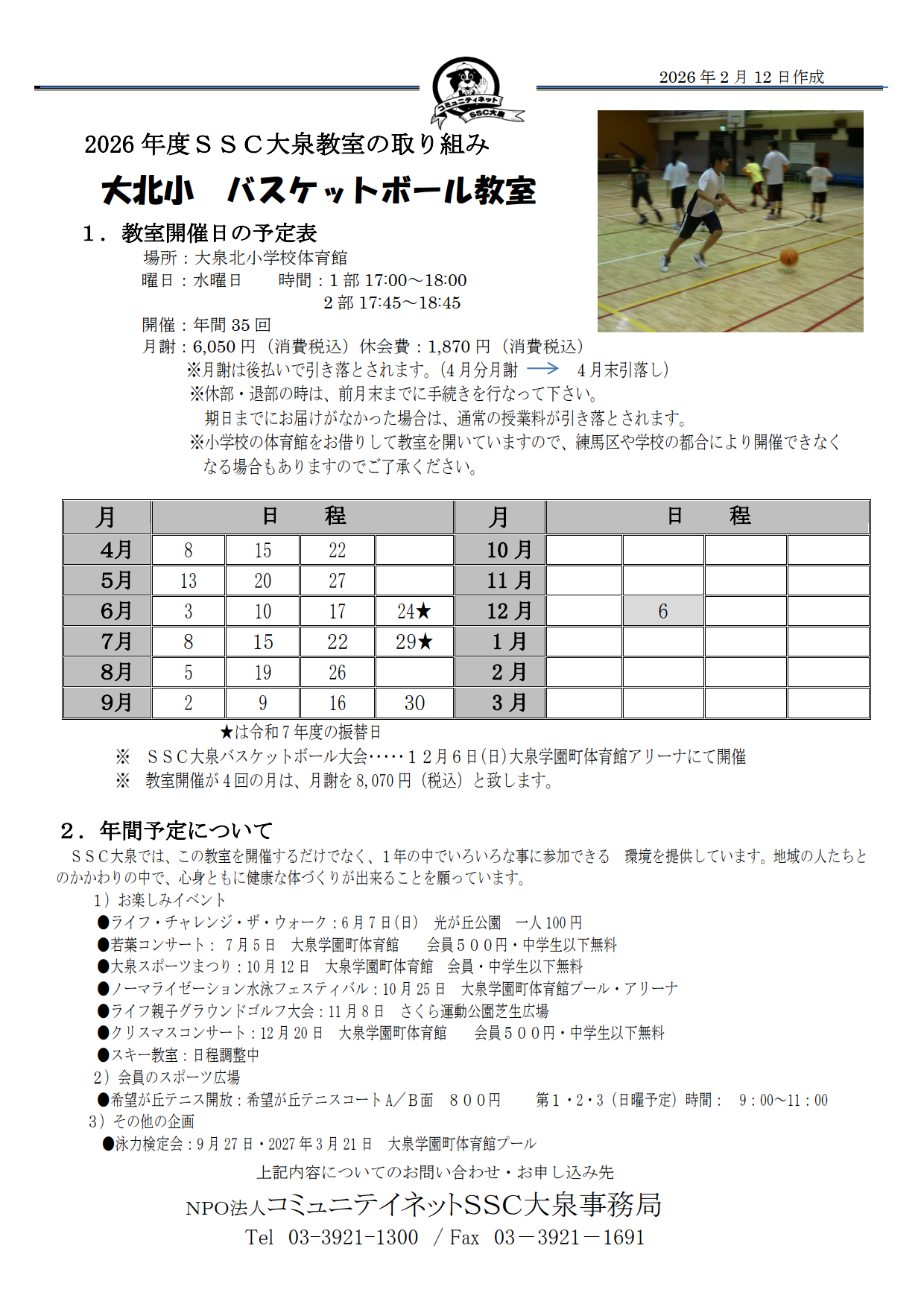 |バスケット教室(大北小)