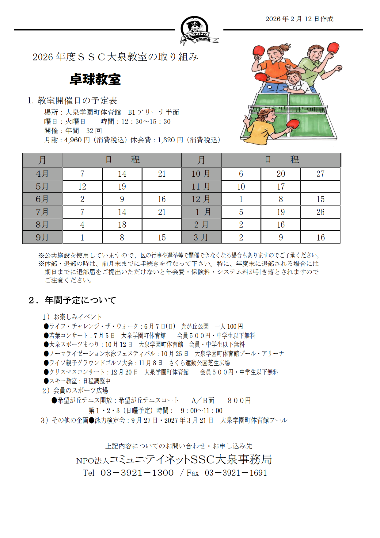 |卓球教室・卓球開放