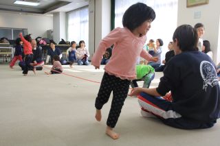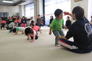 | 10月から始めた親子で体操をしながら「親子で遊ぼうわくわくふれあいスポーツ教室」の様子です。 早稲田大学のスポーツを科学する学部を卒業して間もない大関望トレ-ナーによる楽しくわくわくするふれあい教室で、参加者の皆さんがほんのりと汗を掻きました。皆様のお越しをお待ちしております。金曜日の16:00から17:00に大泉学園町体育館でも開催しています。 |