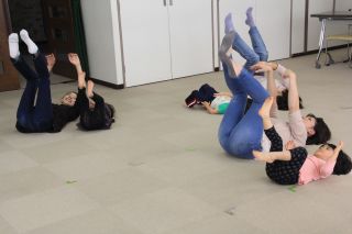 | さー 整理体操を始めまーす・楽しかったね | 手足を天井に向けて・ぶらぶらーと |